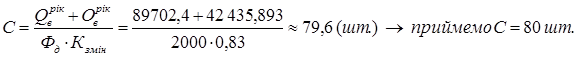 Тут Кзмін = 0,8…1,2 – коефіцієнт змінності роботи обладнання в ремонтній службі підприємства, приймемо Кзмін =0,83;