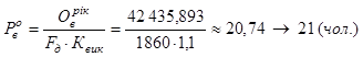 де Fд –дійсний річний фонд роботи одного працівника, Fд =1860 год;