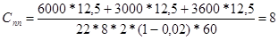 = 3600 шт.; ТА = ТБ = ТВ = 12,5 мин.;