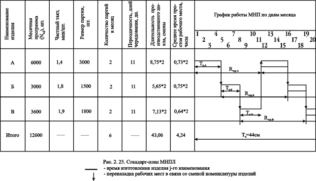 Построение стандарт-плана МНПЛ. Стандарт-план МНПЛ строится на период, равный наибольшему периоду чередования (ритму), но обычно не более чем на месяц. Пример построения стандарт-плана приведен на рис. 2.
