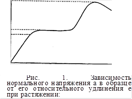 Реальные материалы обладают технической прочностью, основные характеристики которой удобно рассмотреть с помощью диаграммы растяжения образца из пластичного материала (рис.1).
