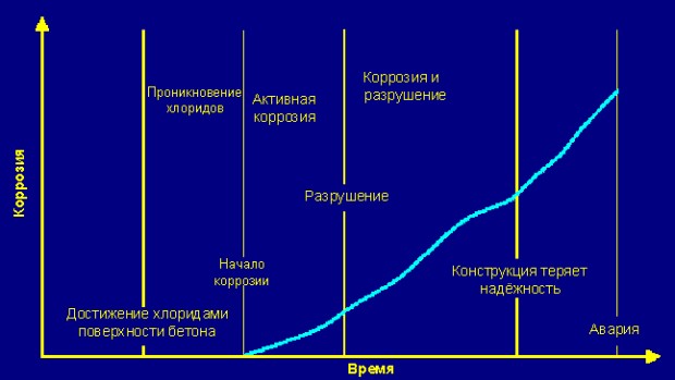На рисунке 1 показана модель разрушения конструкции под воздействием хлоридов.