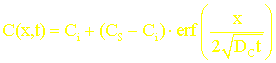 где C(x,t) - концентрация хлоридов на глубине x через время t; CS - концентрация хлоридов на поверхности; erf - функция ошибок Гаусса; DC - коэффициент диффузии хлоридов, зависящий от окружающей среды, твердения и возраста бетона; t - время воздействия хлоридов.