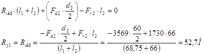 где Fа – осевая сила в зацеплении, Fа=3569Н,