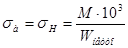 а) Нормальные напряжения изменяются по симметричному циклу, при котором амплитуда напряжений σа равна расчетным напряжениям изгиба σи: