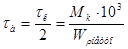 б) Касательные напряжения изменяются по отнулевому циклу, при котором амплитуда цикла τа равна половине расчетных напряжений кручения τк:
