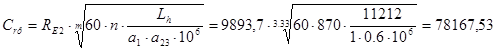 m – показатель степени, m=3.33 – для роликовых подшипников;