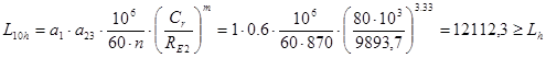 RE – эквивалентная динамическая нагрузка, RE2=9893,7Н;
