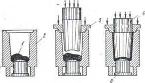 Этот способ прост, производителен, не требует от рабочего высокой квалификации и поэтому дешев. Однако область его применения ограничена. Прежде всего прессованные изделия должны иметь полость такой формы, которая позволила бы пуансону выйти из нее, наружная же форма изделий может быть довольно сложной, иметь выступы и углубления, так как форма может раскрываться на две половинки.
