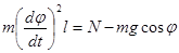 Введем обозначения: l — длина маятника, φ — угол между нитью и вертикалью, t — время, m — масса груза и N — натяжение нити. Если пренебречь силами сопротивления, то задача о движении маятника приводится к решению уравнений