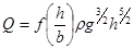 Функцию f(h/b) можно определить опытным путем, наблюдая течение через водослив различной ширины b, но с постоянным h. Определив таким способом функцию f(h/b), формулу (11) можно применять к случаям постоянной ширины b=const, но с различным напором h, т. е. к случаям, в которых опыт не производился.