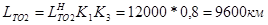 Годовой календарный график ТО автомобилей каждой марки строится на основании усредненной интегральной кривой пробега и совмещается сграфиком машиноиспользования. Предварительно на правой стороне графика машиноиспользования строится шкала ТО - 1 и ТО - 2 параллельно ранее построенной шкале пробега. Соответствующие номера ТО на шкале проставляются на основании нормативов пробега для конкретного типа автомобилей, скорректированных в соответствии с условиями эксплуатации. Корректировка осуществляется по формуле: