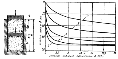 где Н— высота засыпки порошка в форму пресса; h— высота полученной прессовки.