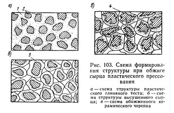 Рис. 104. Схема структуры обожженного черепка полусухого прессования