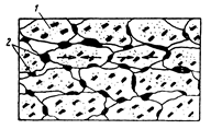 1 — глинистые агрегаты; 2—жидкая фаза, цементирующая глинистые агрегаты контактным спеканием