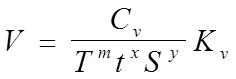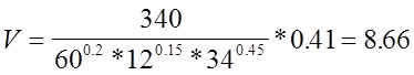 x = 1; y = 0.75; n = 0 — эмпирические коэффициенты.