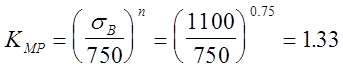 Kmp — поправочный коэффициент, учитывающий влияние качества обрабатываемого материала на силовые зависимости.