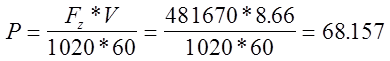 Fz = 10 * 200 * 121 * 340.75 * 8.660 * 1.425= 481670 кН.(2.10)