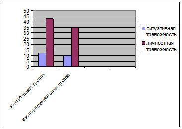 Таблица 9 – Результаты исследования тревожности (экспериментальная группа)