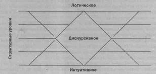 В отечественной психологии наиболее целостную концепцию творчества как психического процесса предложил Я. А. Пономарев (1988). Он разработал структурно-уровневую модель центрального звена психологического механизма творчества. Изучая умственное развитие детей и решение задач взрослыми, Пономарев пришел к выводу, что результаты опытов дают право схематически изобразить центральное звено психологического интеллекта в виде двух проникающих одна в другую сфер. Внешние границы этих сфер можно представить как абстрактные пределы (асимптоты) мышления. Снизу таким пределом окажется интуитивное мышление (за ним простирается сфера строго интуитивного мышления животных). Сверху - логическое (за ним простирается сфера строго логического мышления компьютеров).