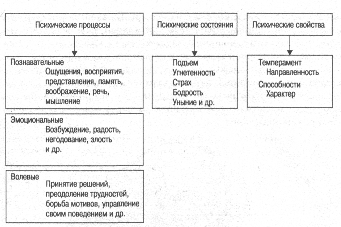 В настоящее время, рассматривая структуру психических явлений, принято выделять психические процессы, психические состояния и психические свойства (рис. 1.3.).