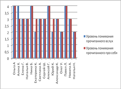 Дальнейшее совершенствование процесса чтения осуществляется в направлении развития беглости и выразительности. На последних ступенях формирования навыка чтения все еще имеют место трудности синтеза слов в предложении и синтеза предложений в тексте. Понимание прочитанного осуществляется лишь в том случае, если ребенок знает значение каждого слова, понимает те связи между ними, которые существуют в предложении. Таким образом, понимание прочитанного возможно лишь при достаточном уровне развития лексико-грамматической стороны речи [24].
