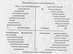 В основу практического исследования в данной работе положим следующее предположение: темпераментный профиль человека содержит черты присущие различным темпераментам. Преобладающий тип получается при сопоставлении черт четырех типов темперамента.