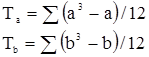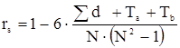 Поскольку в обеих сопоставляемых ранговых рядах присутствуют группы одинаковых рангов, перед подсчетом коэффициента ранговой корреляции необходимо внести поправки на одинаковые ранги Та и Тb :