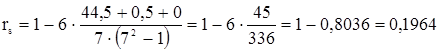 В данном случае, в первом ряду а присутствуют две группы одинаковых рангов, следовательно а = 2.