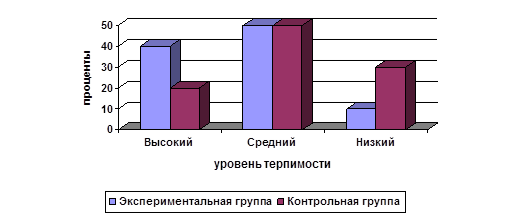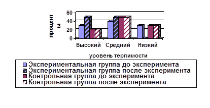 Таблица 10Результаты исследования уровня терпимости в экспериментальной группе испытуемых