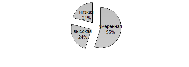 Рассматривая эмоциональное состояние, то здесь можно наблюдать все виды тревожности, но умеренная тревожность превалирует.