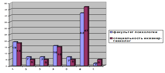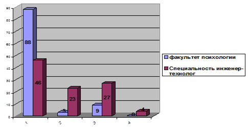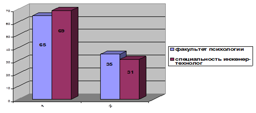 Эмпирическая база исследования: В исследовании (2007-2008г. г) приняли участие студенты 5 курсов КГПУ им. Циолковского и КФ МГТУ им. Баумана. Всего в исследовании принимало участие 49 студентов в возрасте от 20 до 23 лет, из них 26 девушек и 24 юношей.