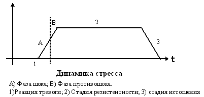Ганс Селье выделил 3 фазы общего адаптационного синдрома (О.А.О) или синдрома биологического стресса (динамика стресса):
