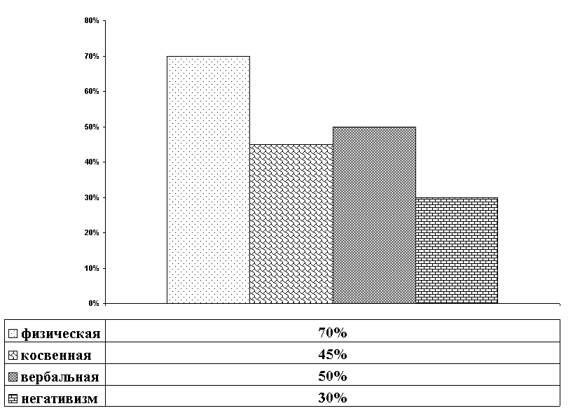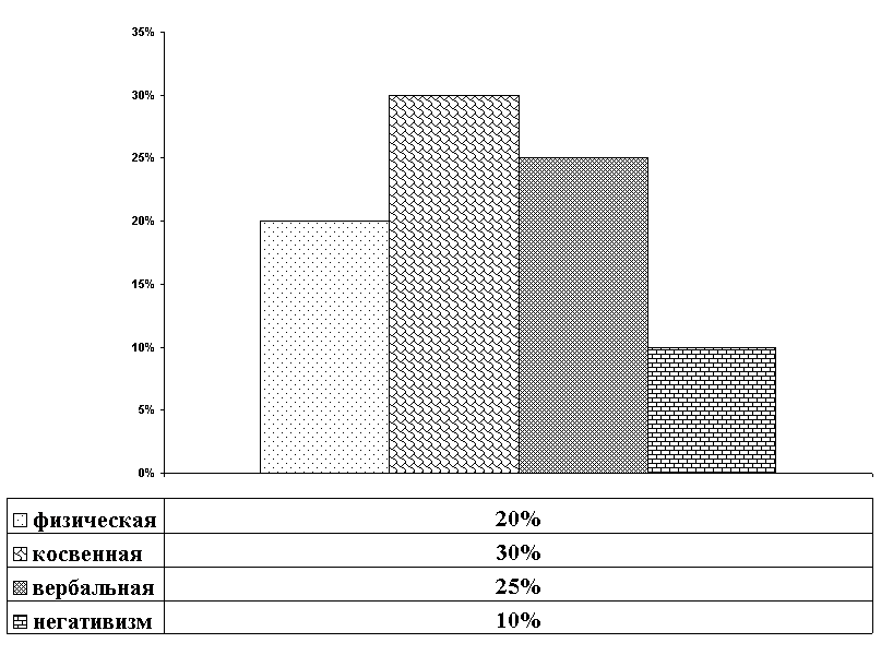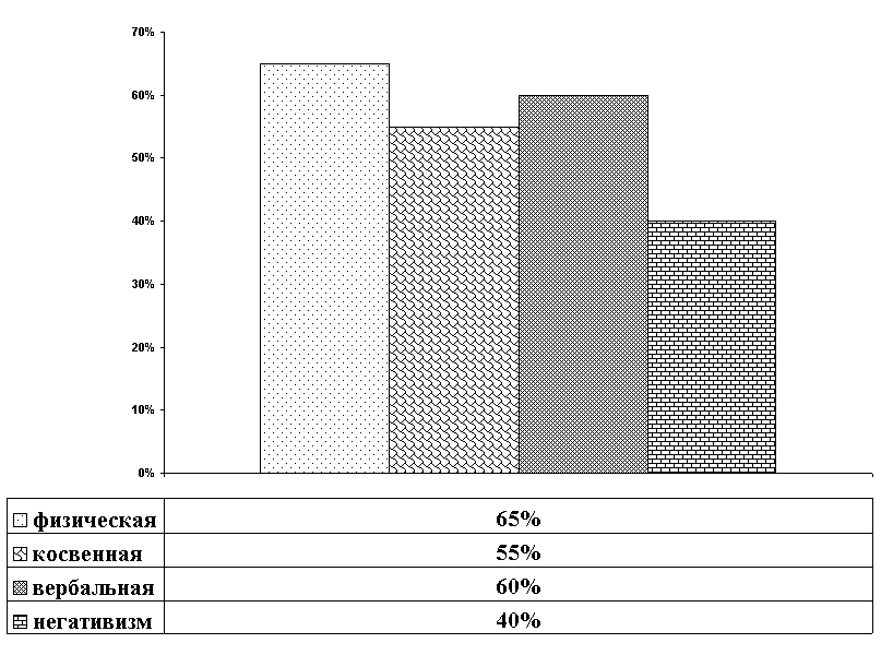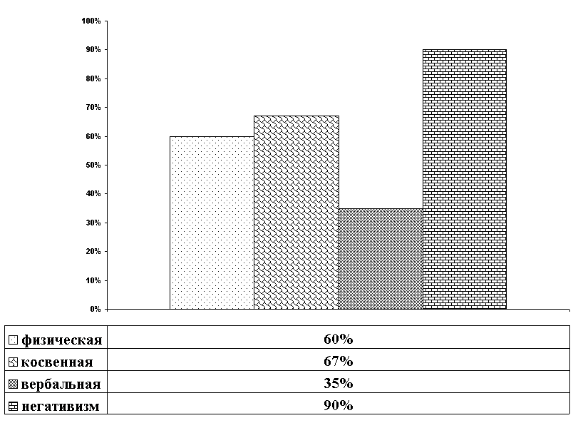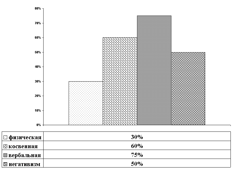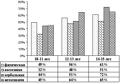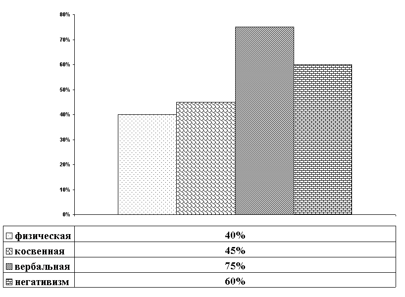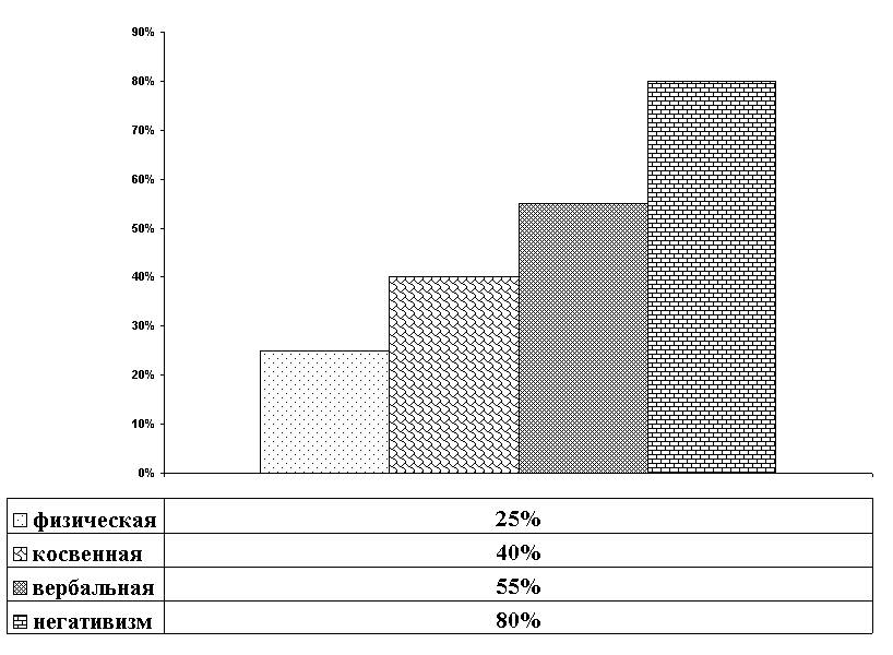 Анализ приведённых данных (приложение 1) свидетельствует о том, что у 10-11- летних детей преобладают физические формы агрессивности. Особенно быстрыми темпами с возрастом растёт негативизм. По мере взросления у подростков всё сильнее проявляется вербальная агрессия.