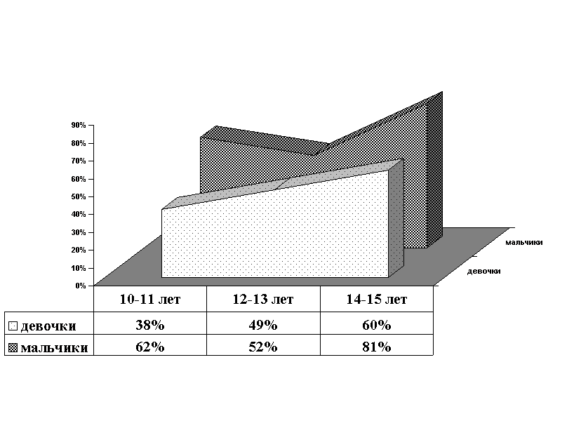 | 14-15 лет | мальчики | 61% | 39% | 81% | 82% |