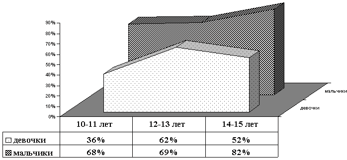 | 10-11 лет | мальчики | 70% | 40% | 62% | 68% |