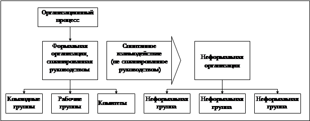 Организация – это социальная категория и одновременно – средство достижения целей. Это – место, где люди строят отношения и взаимодействуют. Поэтому в каждой формальной организации существует сложное переплетение неформальных групп и организаций, которые образовались без вмешательства руководства. Эти неформальные объединения часто оказывают сильное влияние на качество деятельности и организационную эффективность. [5,8]