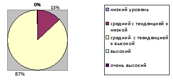 Анализируя результаты исследования уровня тревожности у женщин, которые не беременны, можно отметить, что среди испытуемых, вошедших в выборку исследования, не встречаются женщины с низкой, высокой и очень высокой тревожностью, но у большинства небеременных женщин (87%) уровень средний с тенденцией к высокой тревожности. Средний уровень тревожности с тенденцией к низкому характерен для людей с устойчивой психикой, уверенных в себе (этот вариант встречается у 13% испытуемых).
