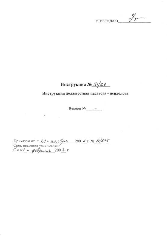 Далее я познакомилась с организацией в данном детском учреждении работы психолога. Педагог-психолог МДОУ №26 «Эрудит» - Силина Ирина Викторовна, в своей работе руководствуется должностной инструкцией (Приложение 1).