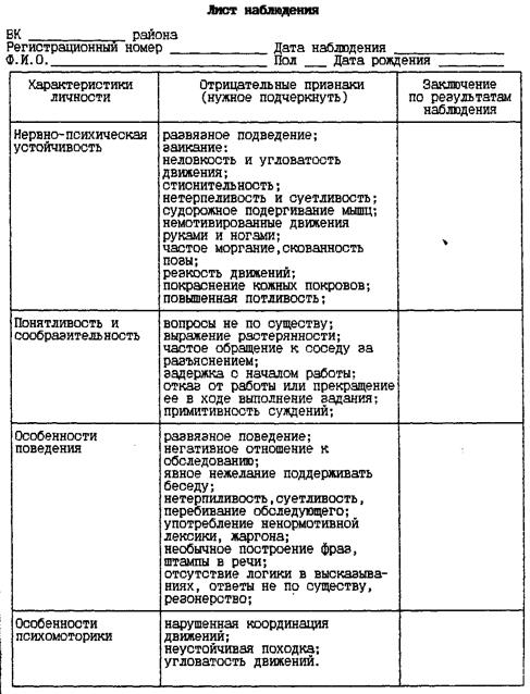 Объектом исследования были граждане, в возрасте от 20 до 31 года, уроженцы Тульской области, поступающие на военную службу по контракту. Количество испытуемых: 100 человек.