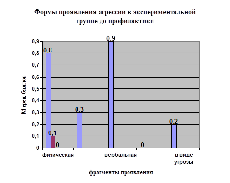 6. Также проводилась диагностика с той же методикой и в тех же условиях для определения формы агрессии у детей. По результатам было видно, что в экспериментальной группе дети имеют вербальную и физическую агрессию, но более сниженную.
