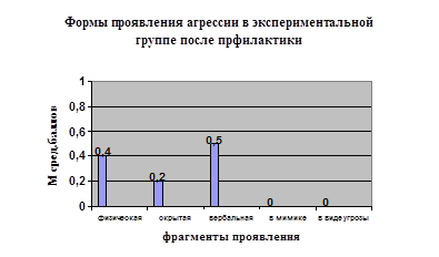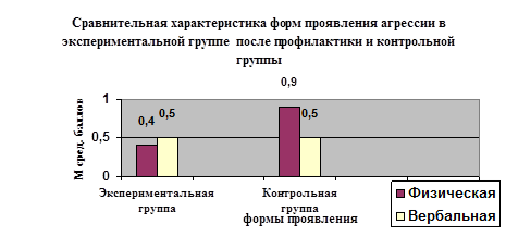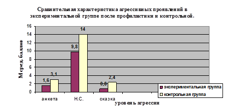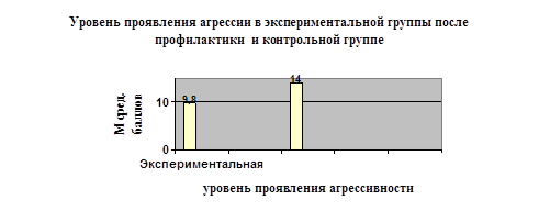 7. А что касается экспериментальной группы после профилактики и контрольной группы, не имеющие ни какого воздействия, то можно сказать, что экспериментальной группе форма агрессии снизалась, нежели в контрольной группе.