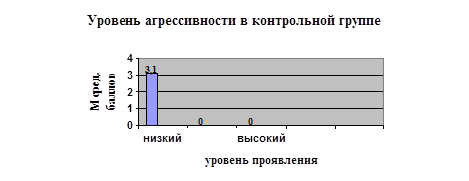 По результатам тестирования можно отметить, что у экспериментальной группы выражен низкий уровень агрессивности – 0,8% (8 детей).