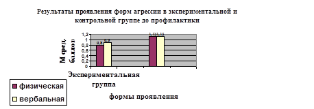 1. В результате проведения контактирующегося эксперимента были установлены формы проявления агрессивности по методике «Структурализированное наблюдение». В обеих группах преобладает вербальная и физическая агрессия.