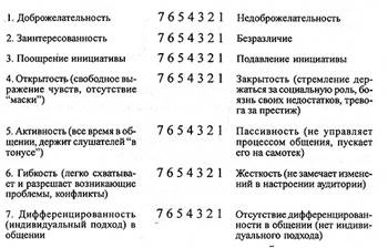 При очень низких оценках 7-10 баллов всякое взаимодействие с аудиторией отсутствует. Общение развивается по моделям дикторского или гипорефлексивного стиля. Оно обезличено, по психологическому содержанию анонимно и практически ничем не отличается от массовой публичной лекции или вещания по радио. Все функции ограничиваются лишь информационной стороной. Эффективному взаимодействию общающихся могут препятствовать самые разные факторы, известные как барьеры общения. Такие объективные факторы, как расстояние, отсутствие видимости и слышимости, - предмет анализа физиков и инженеров. Мы же будем рассматривать в дальнейшем субъективные факторы, связанные с личностями общающихся и сопутствующими общению обстоятельствами.