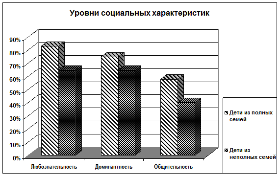 Дети из полных семей проявляют более высокую степень общительности, любознательности, а также их показатели доминирования выше, чем у детей из неполных семей. В полных семьях дети обладают большим энтузиазмом, потребностью в общении.