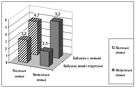 По результатам исследования с помощью методики Рене Жиля отношение к отцу в группах детей отличается: в полных семьях – 51%, в неполных – 30%. Отмечается различное отношение детей к бабушке и дедушке, хотя в неполных семьях, где живет бабушка, отношение к ней выше, проявляется большая привязанность, чем у детей из полных семей. Это объясняется тем, что бабушка в неполной семье играет более активную роль в воспитании внуков, чем бабушка в полной семье, где, в основном, воспитанием занимаются родители.