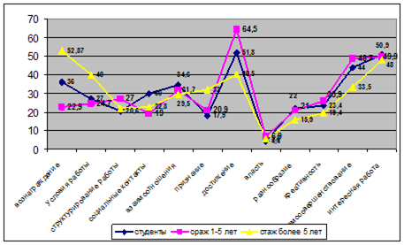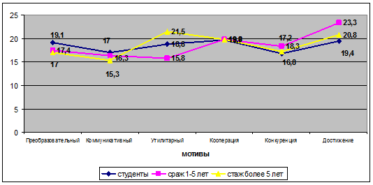 Несмотря на возрастные особенности и наличия или отсутствия опыта, существует сходство в общей структуре мотивационного комплекса студентов – педагогов и специалистов
