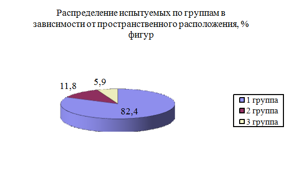 Количественный анализ полученных данных свидетельствуют о том, что в рисунках испытуемых преобладает 3 группа, т.е. фигуры прорисованы одинаковы.