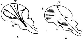 А. Бодрствование. Корковые влияния ( I ) тормозят «центры сна» ( ІІ ) и восходящие активирующие влияния ретикулярных структур ( ІІІ ) и возбуждения, идущие по лемнисковым путям ( IV ), свободно достигают коры